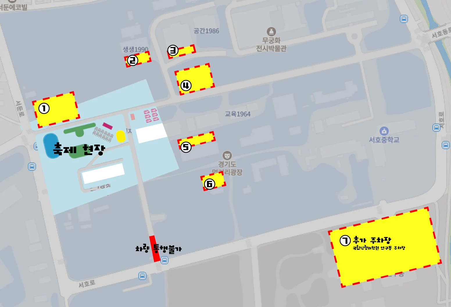 1. 주차장은 경기상상캠퍼스 영내 6곳, 상캠 외부 1곳을 준비해두었습니다.